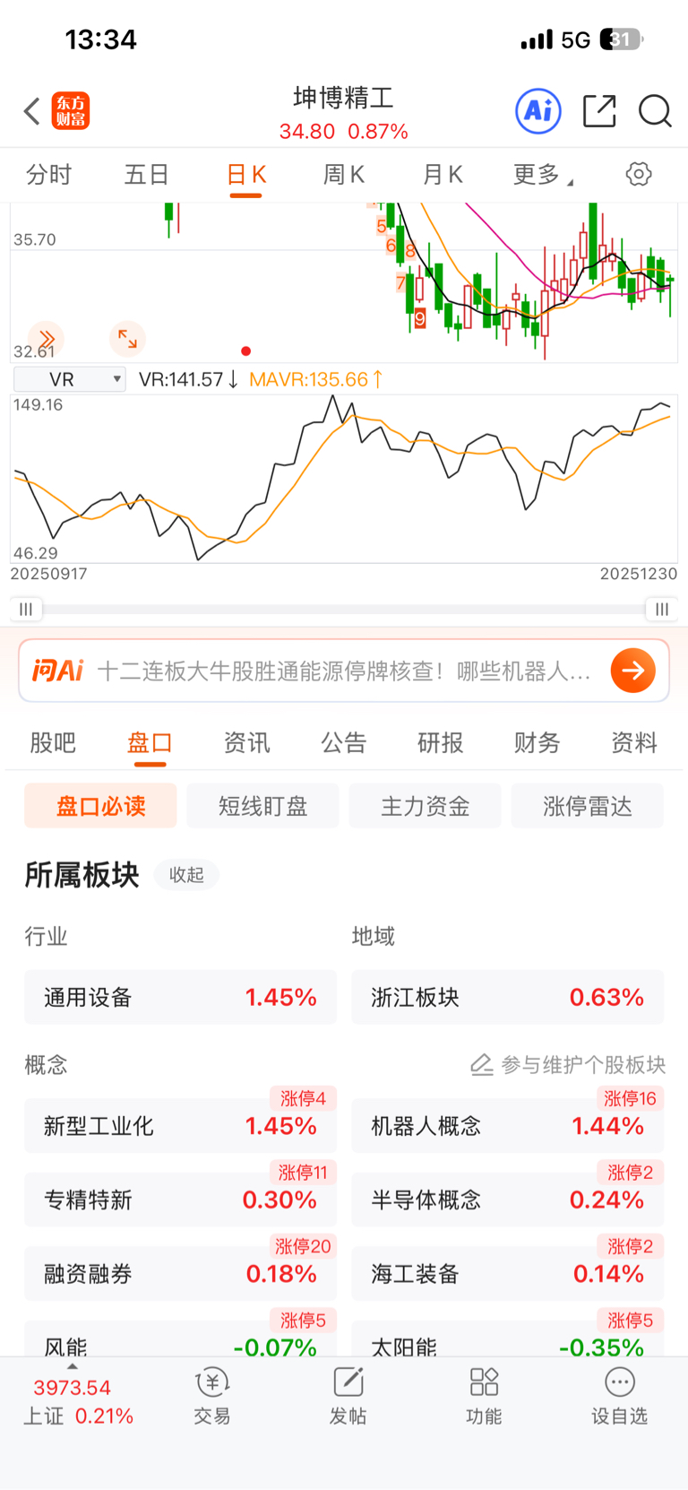 北交所的坤博精工机器人概念股还没涨,大家快来看看