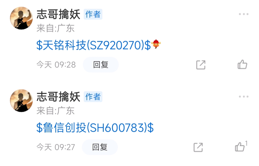 $天铭科技(SZ920270)$ $鲁信创投(SH600783)$ $中国卫星(SH600118)$