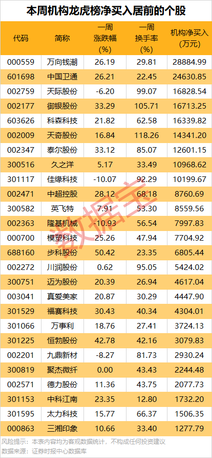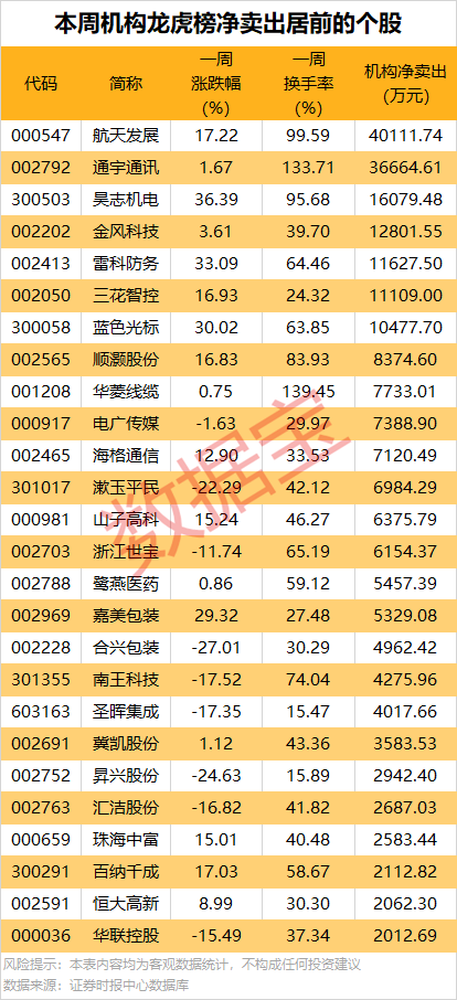 机构龙虎榜本周净卖出48股,7股净卖出金额逾1亿元。
