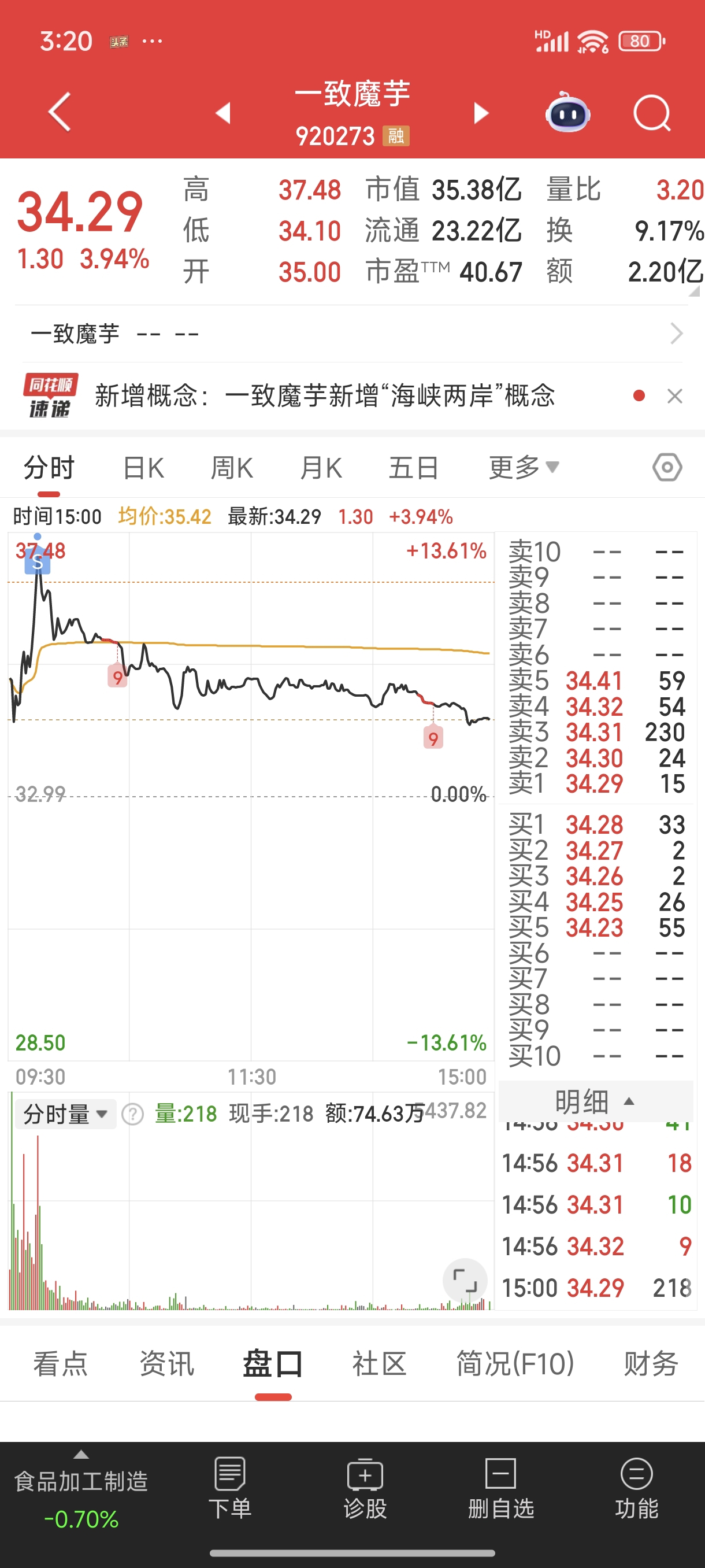 $一致魔芋(SZ920273)$ 37.41卖了一半,后悔没全卖,郁闷了