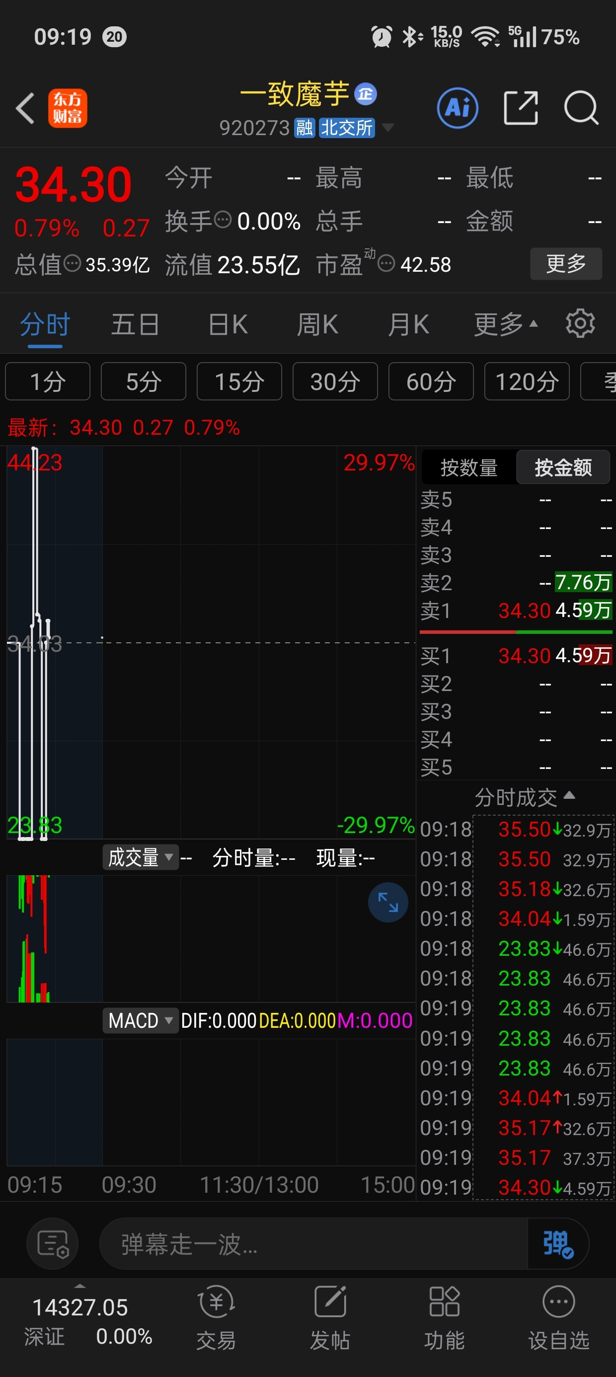 $一致魔芋(SZ920273)$ 这集合竞价真野