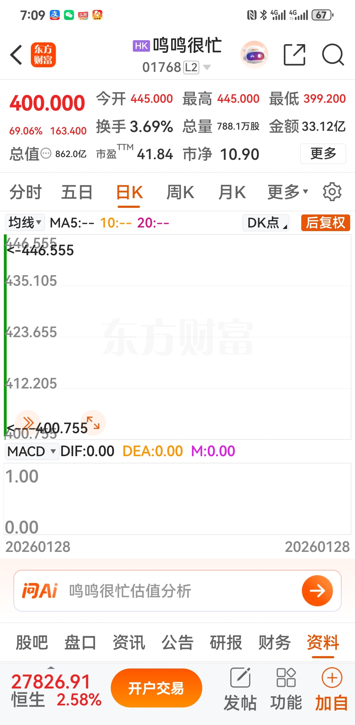 鸣鸣很忙,赵一鸣今天香港上市,每股400元,魔芋明天40元