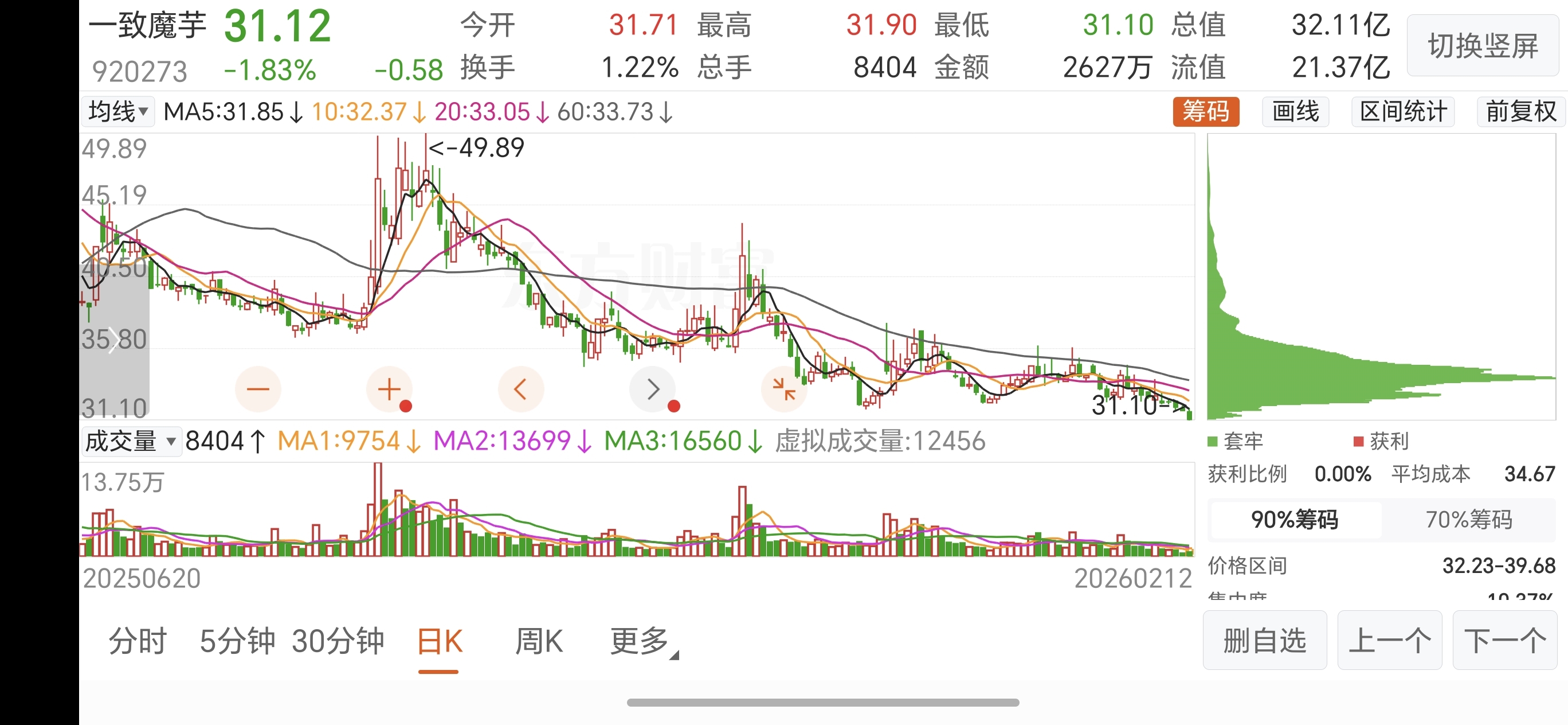 $一致魔芋(SZ920273)$ 37上面的人不卖,下跌不止