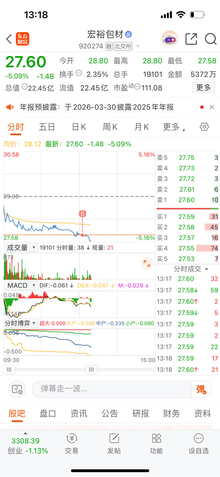 $宏裕包材(SZ920274)$ 买入就跌,见鬼了