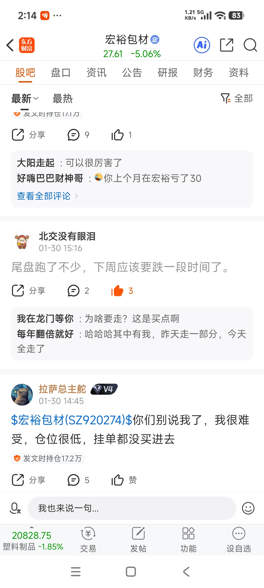 温馨提示: 1.根据《证券法》规定,禁止编造、传播虚假信息或者误导性信息,扰乱证券市场;2.用户在本社区发表的所有资料、言论等仅代表个人观点,与本网站立场无关,不对您构成任何投资建议。用户应基于自己的独立判断,自行决定证券投资并承担相应风险。《东方财富社区管理规定》