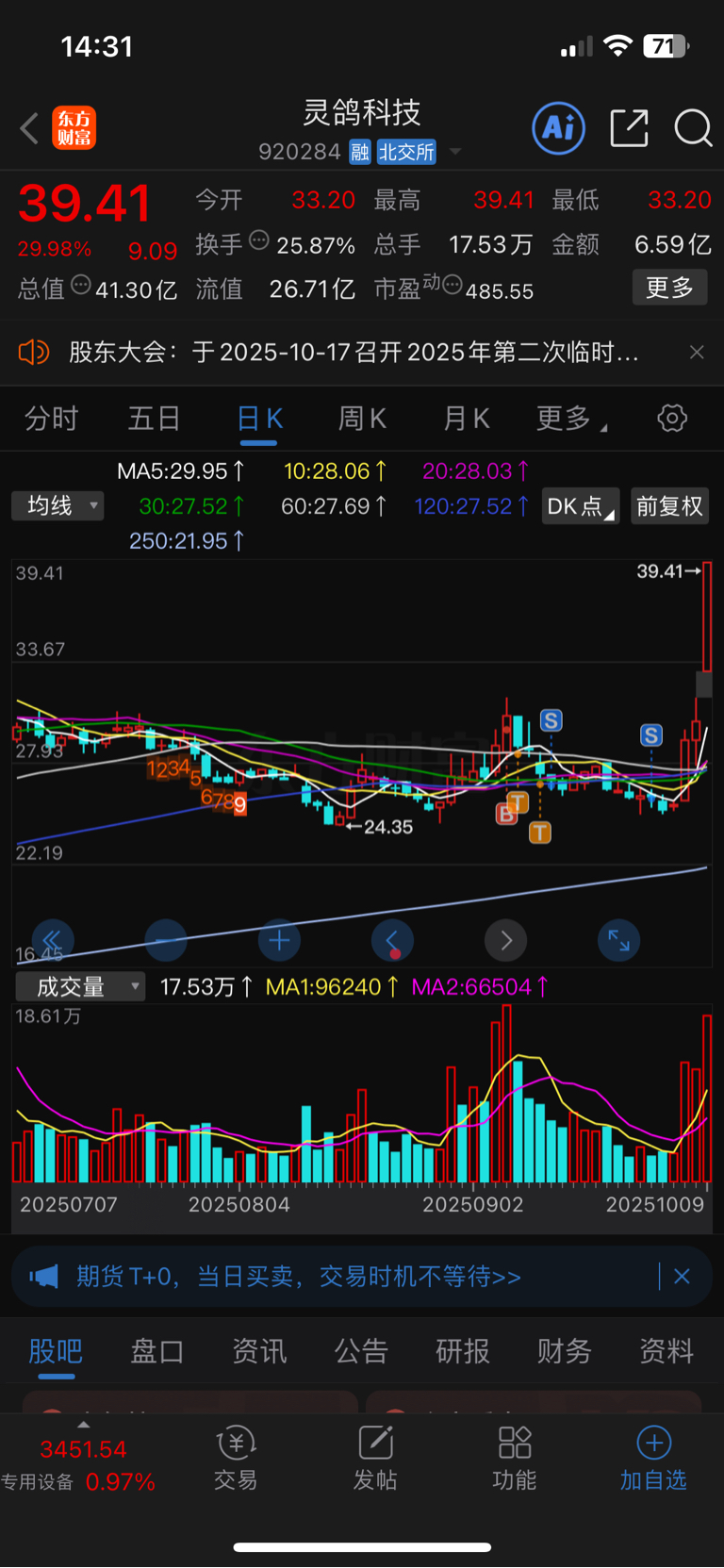 $灵鸽科技(SZ920284)$ 卖光你就拉涨停?