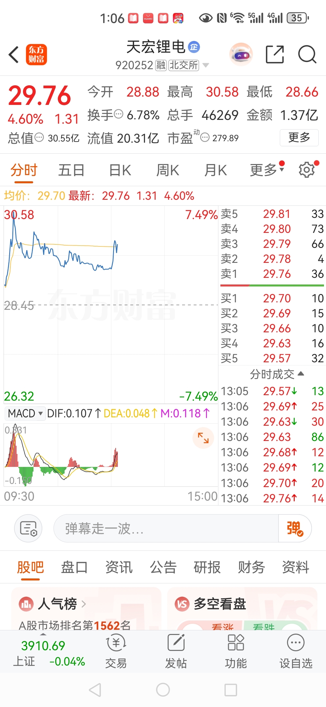 $灵鸽科技(SZ920284)$ 看你兄弟天宏锂电大涨,你才是龙头,看好你最靓的仔,加仓