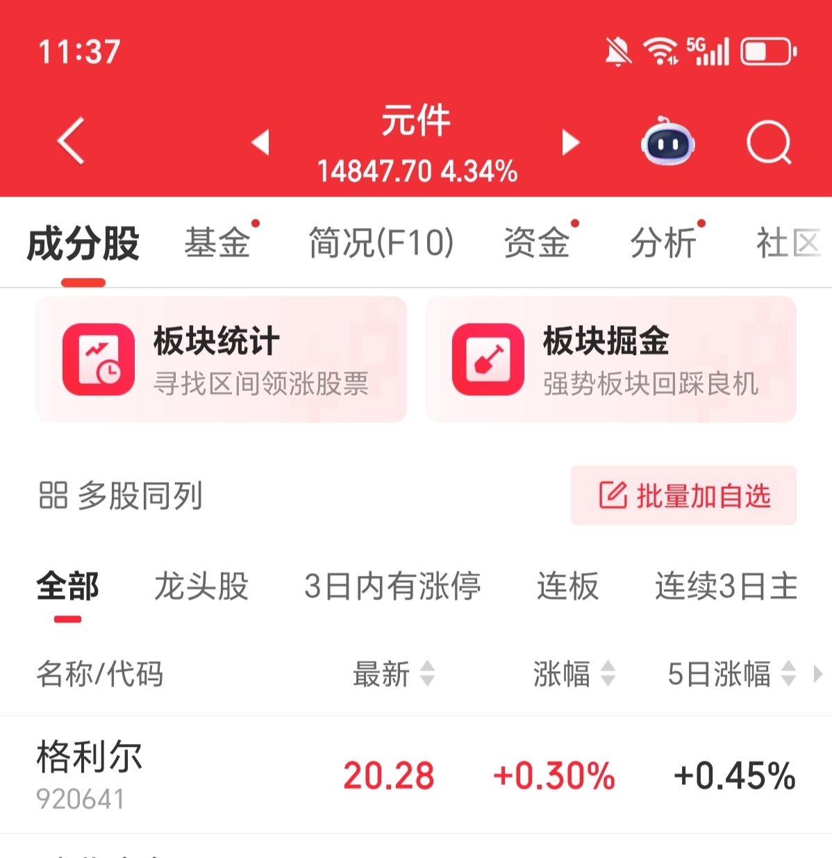 灵鸽科技股价大涨市值高达40多亿,格利尔业绩大增,元件板块暴涨,涨停潮,其它所有