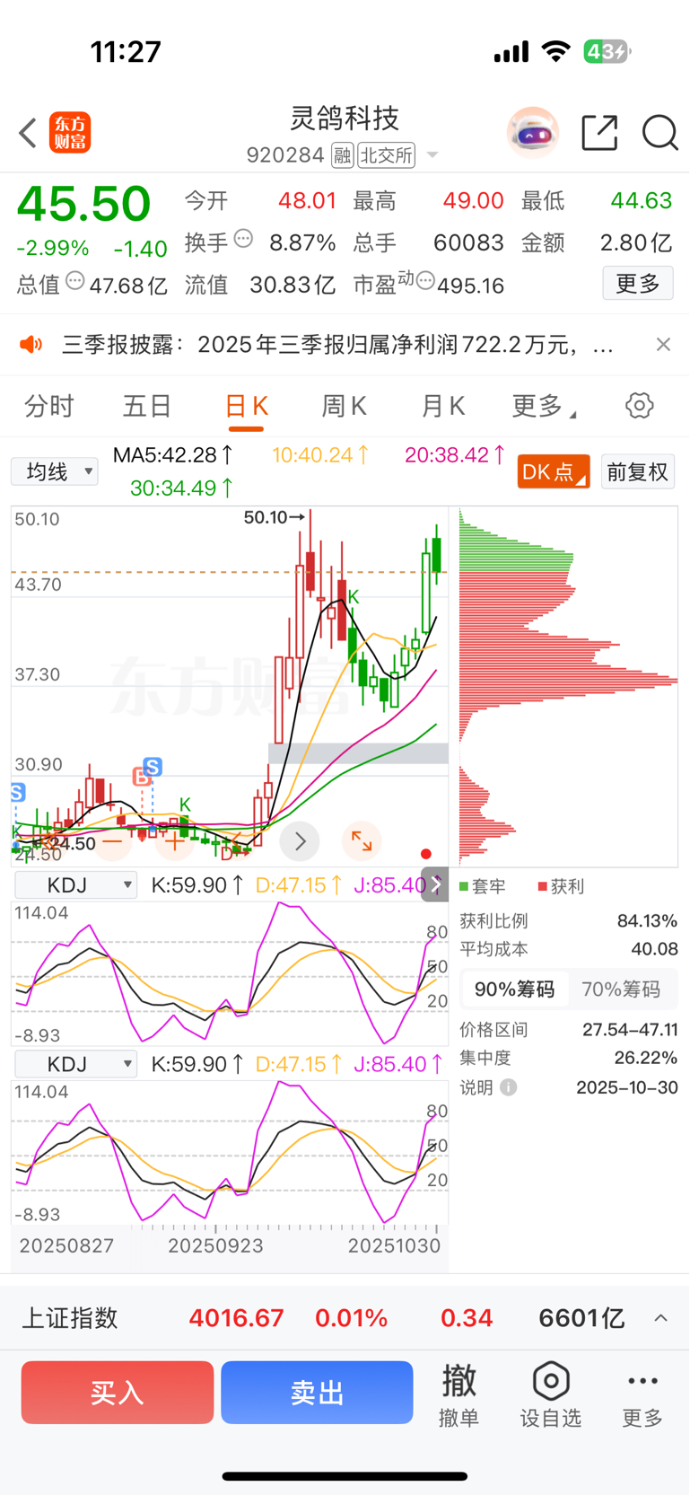 $灵鸽科技(SZ920284)$ 你们持仓的感恩吧!我几千股25卖的