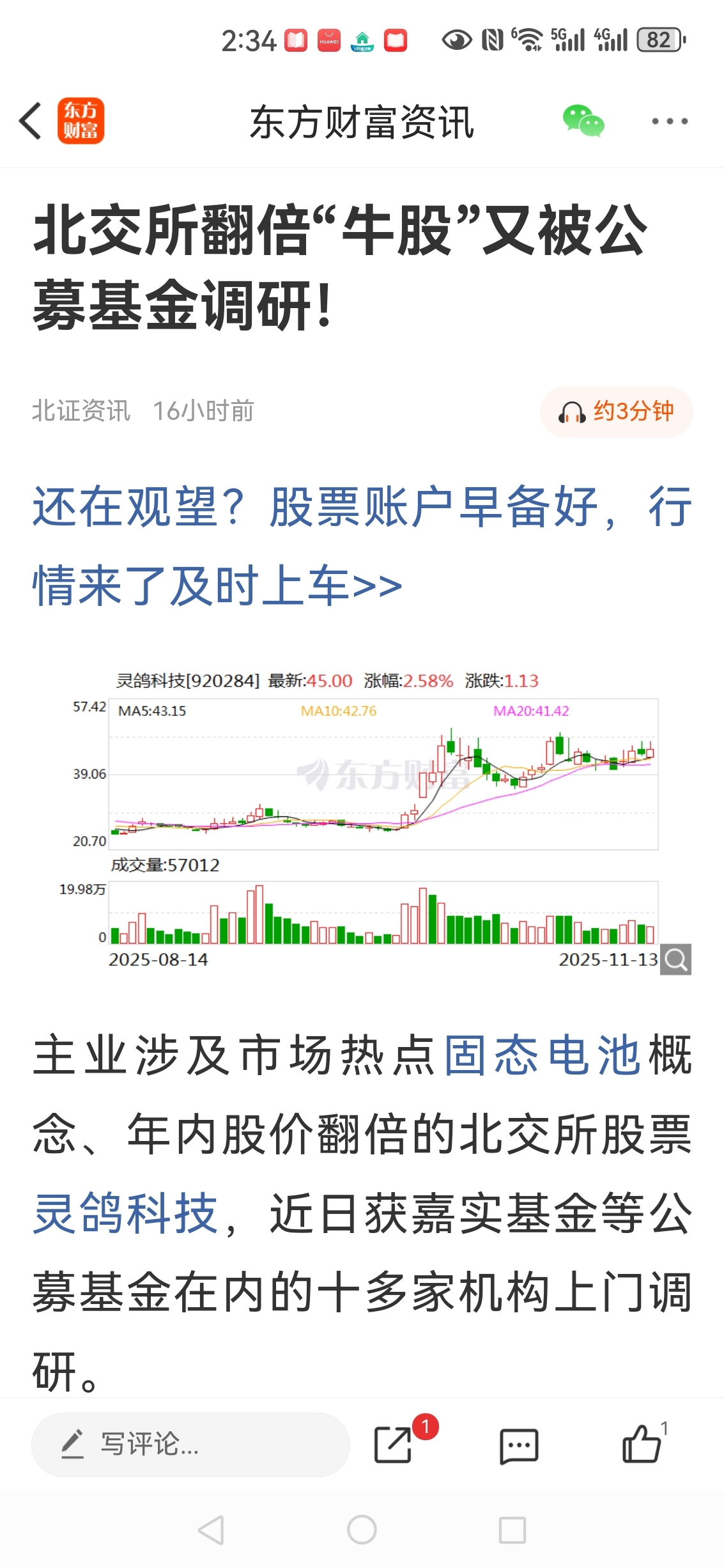 $灵鸽科技(SZ920284)$ 基金公司频繁调研灵鸽科技,灵鸽科技必将过百元!