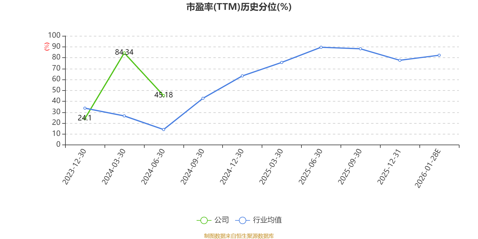 以本次披露业绩预告均值计算,公司近年市盈率(TTM)图如下所示: