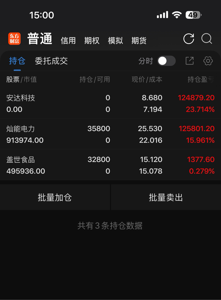 上午磷化工再度走强,周五介入的安达科技当之无愧,不过已经到了自己短线期待的价位,就全部清仓处理了。22深水位置再次锚定灿能电力没想到午后给了一个大大的惊喜。上午追了一些盖世食品,不过冲高回落,看来明天还要伺机而动了。$灿能电力(SZ920299)$ $安达科技(SZ920809)$ $盖世食品(SZ920826)$