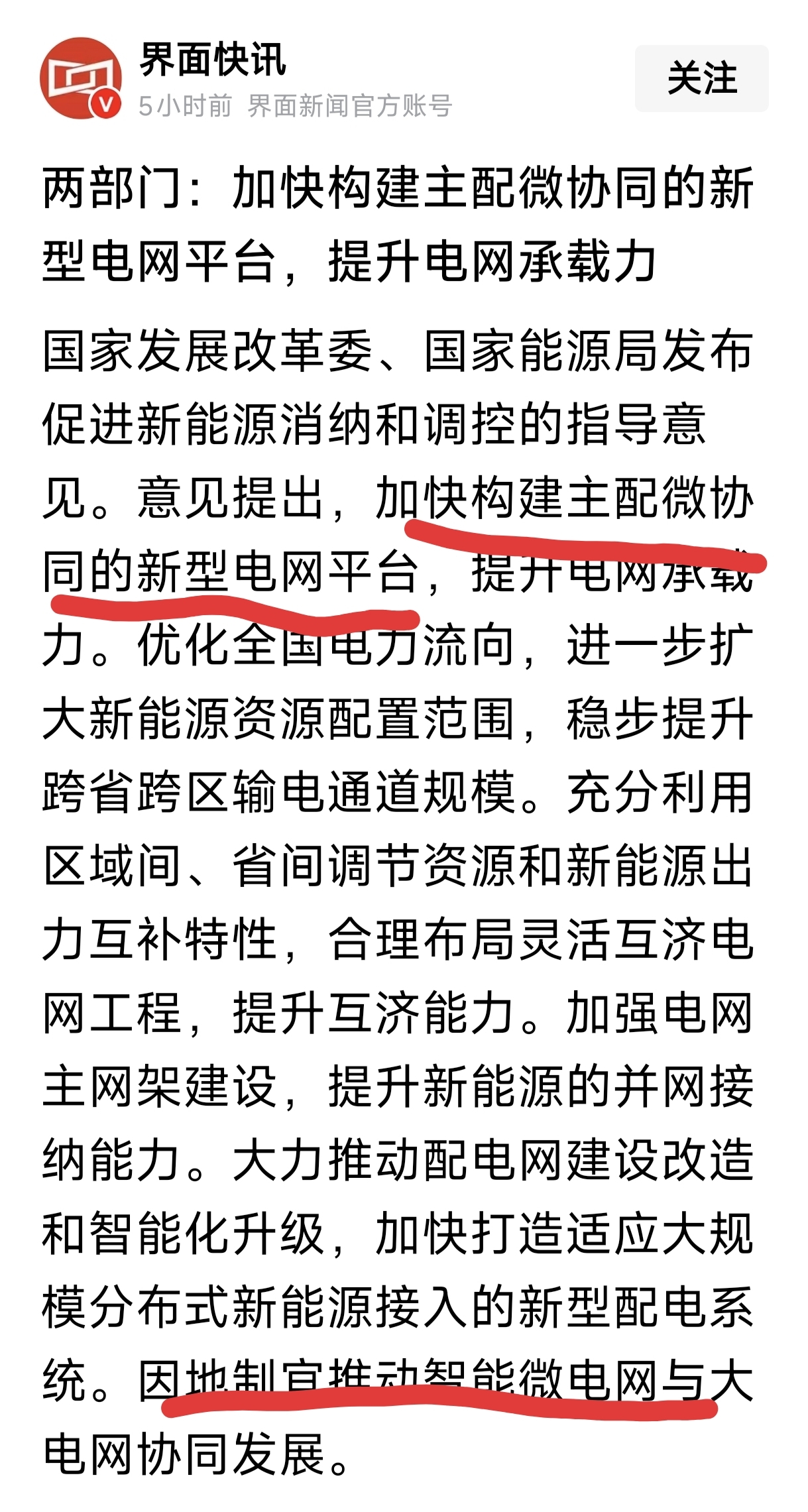 $灿能电力(SZ920299)$ $亿能电力(SZ920046)$ $保变电气(SH600550)$ 灿能电力江苏本地企业,全国最大规模微电网集群试点落地江苏。叠加十五五电网规划发展重点,两部门开始正式推进智能电网进程。灿能电力重点打造服务于AI数据电网供应系统,低市值必然翻倍