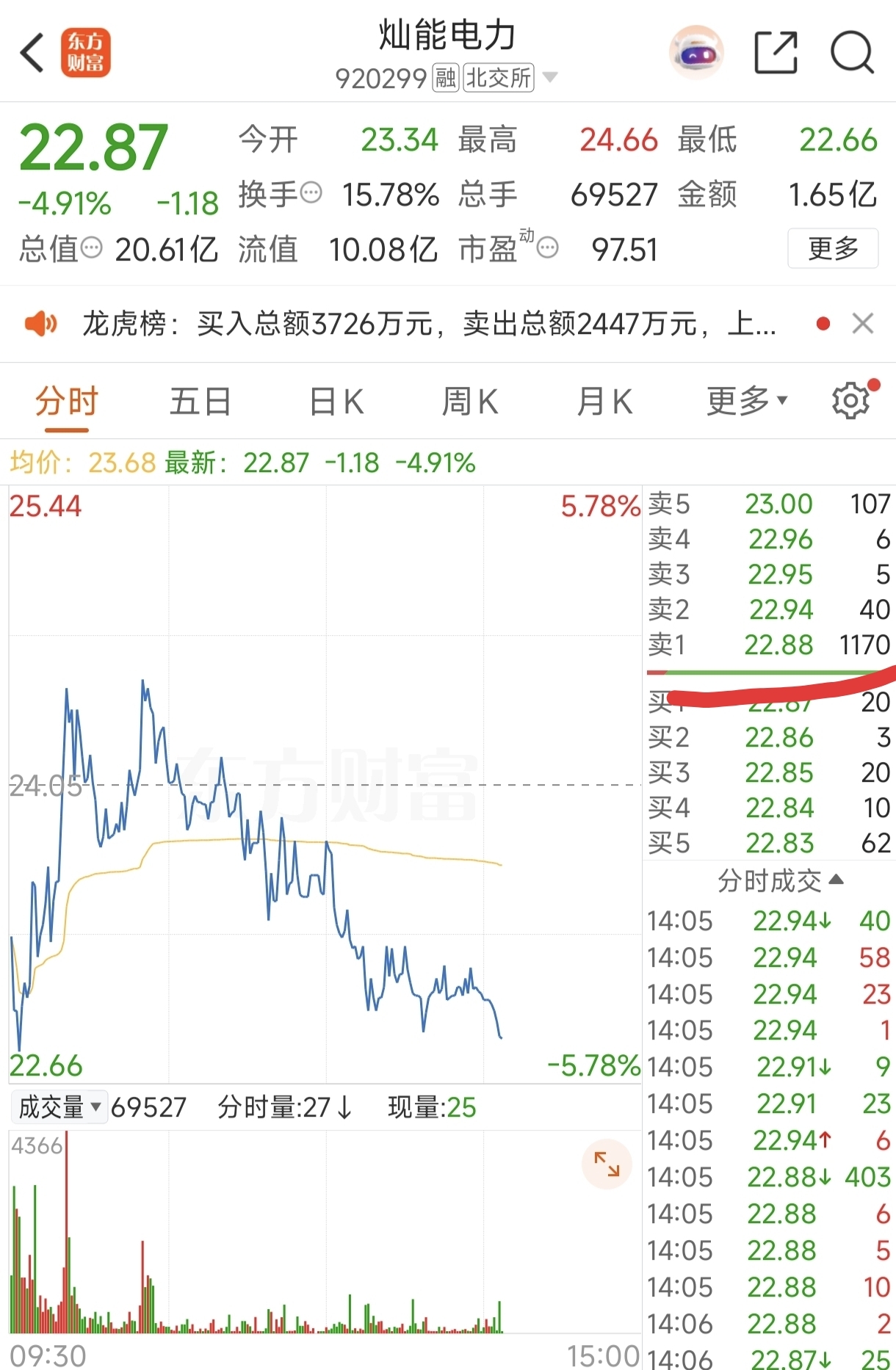 $灿能电力(SZ920299)$ 彻底完了,北交量化永远就是这样,砸盘前先把1000手挂上