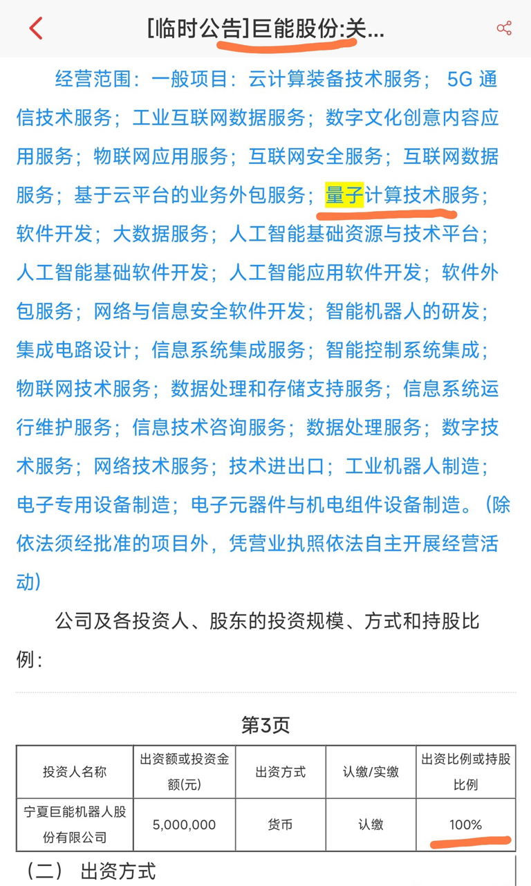 可以说巨能股份是蛰伏着的低位量子计算+人型机器人标的,流通盘仅6亿!超低价小盘,随时会被资金炒作。$科大国创(SZ300520)$