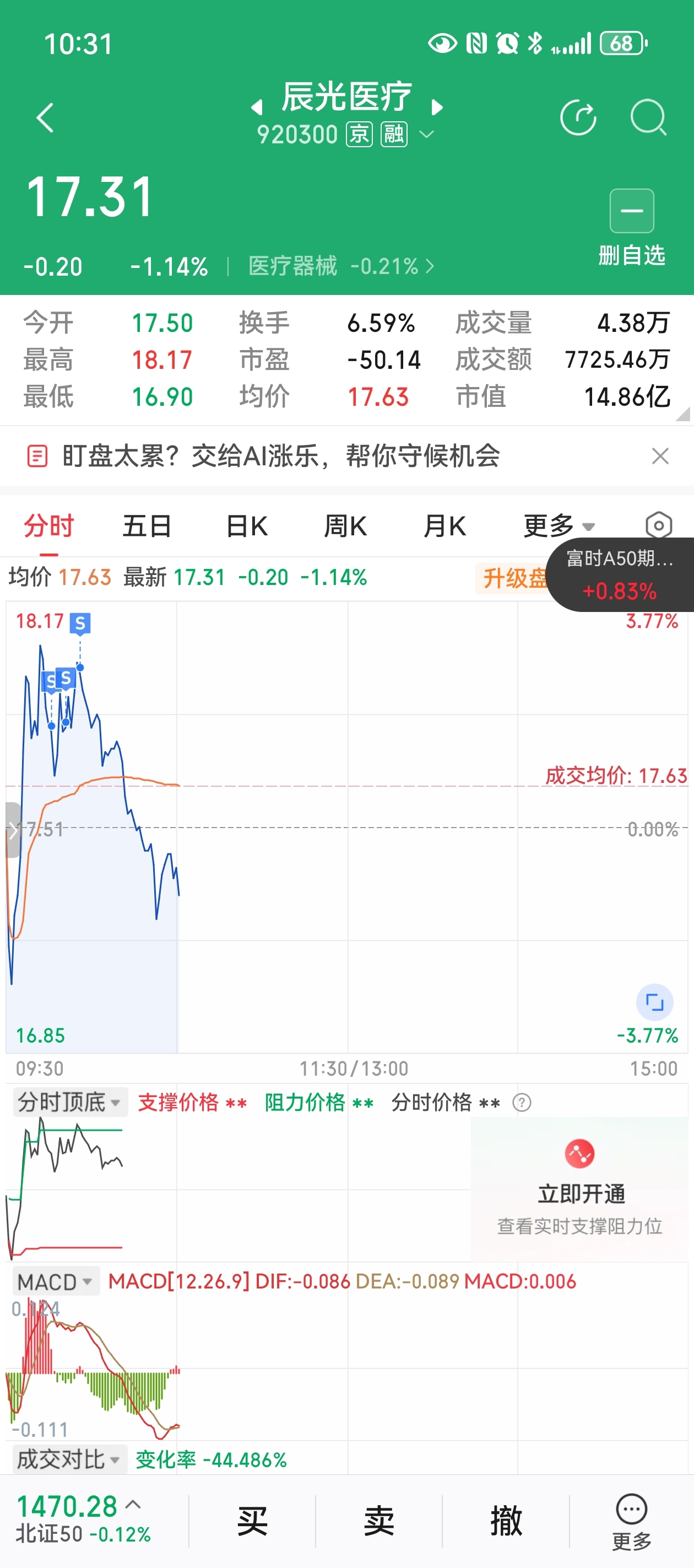 $辰光医疗(SZ920300)$ g太多了心里不踏实找了