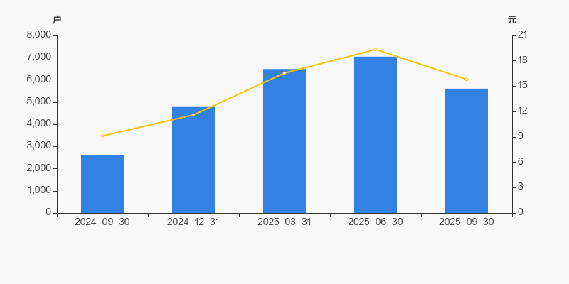 截至2025年9月30日,公司最新总股本为8584.71万股,其中流通股本为6653.17万股。户均持有流通股数量由上期的9441股上升至1.19万股,户均流通市值18.77万元。