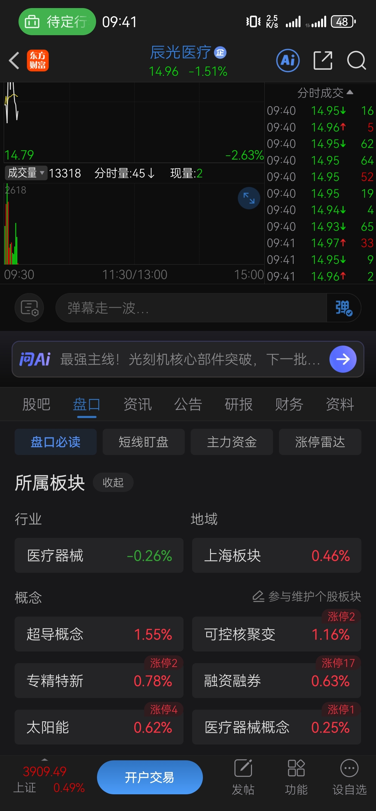 $辰光医疗(SZ920300)$ 你跟的那个板块儿呢?