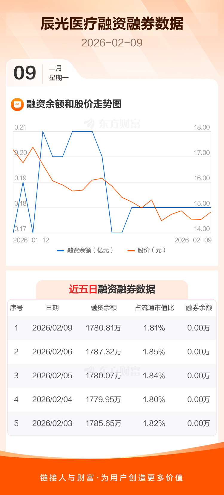 交易所最新数据显示,辰光医疗于2026年2月9日获融资买入8838元,融资偿还7.39万元,当日融资净偿还6.51万元。目前,该股融资余额1780.81万,占流通市值比例为1.81%。