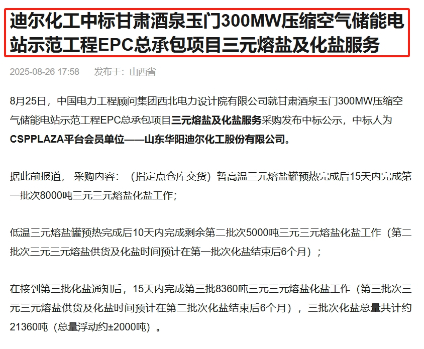 熔盐储能+芳香胺+硝酸+光热发电+收购润禾钾盐四季度并表+冰雪经济(融雪剂),突