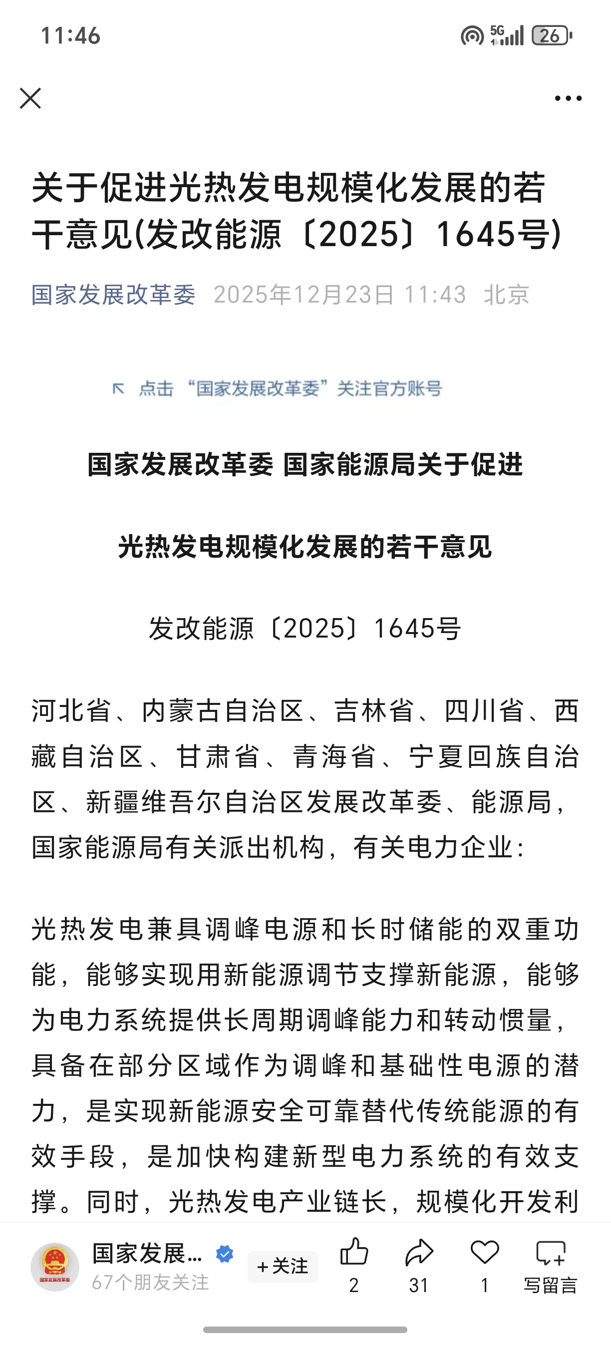 $迪尔化工(SZ920304)$ 光热发电,熔盐储能必备,迪尔化工的熔盐含材料与罐体等,对接北方市场,在内蒙、甘肃等地都有落地。钍基熔盐+光热储能+烟花爆竹解禁。坐等新高验证!
