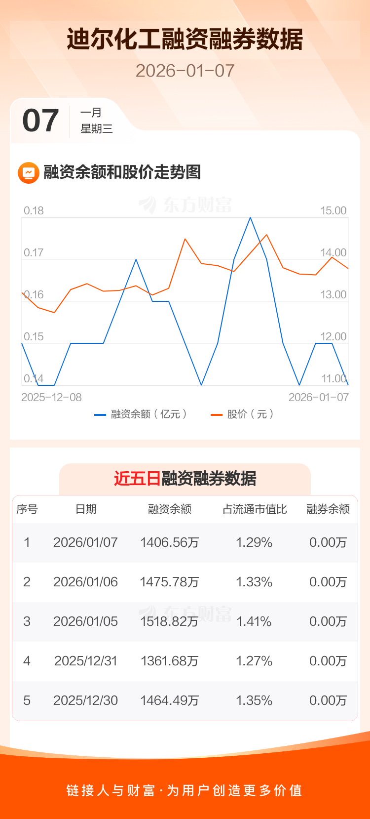 迪尔化工:融资净偿还69.22万元,融资余额1406.56万元