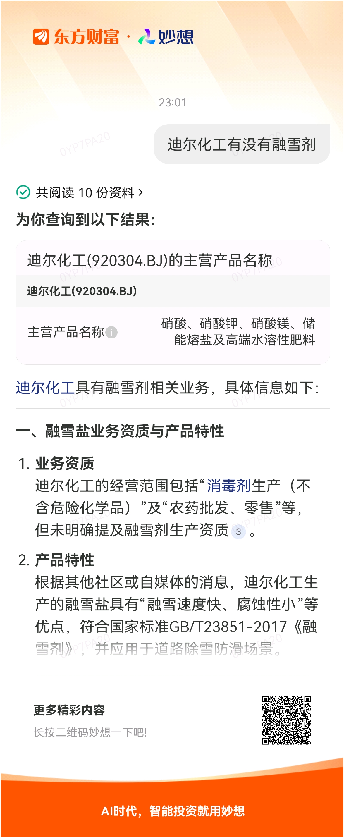 #@妙想,你怎么看?# 妙想一下:迪尔化工有没有融雪剂