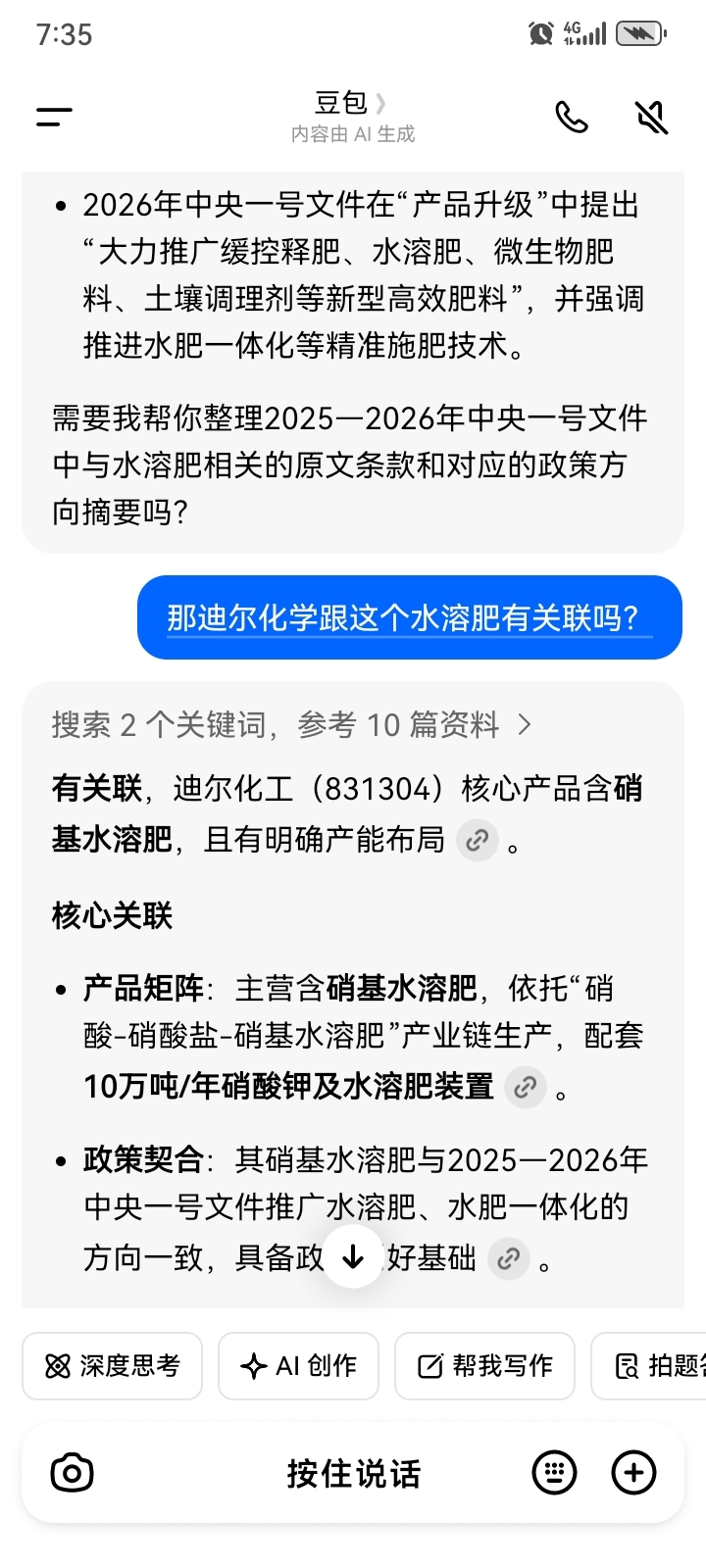 $迪尔化工(SZ920304)$ 一号文件水溶肥与迪尔化工有关联。