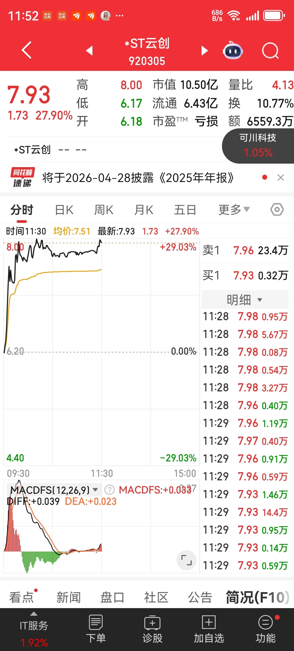 $*ST云创(SZ920305)$ 下午开盘涨停了!手慢了没有了