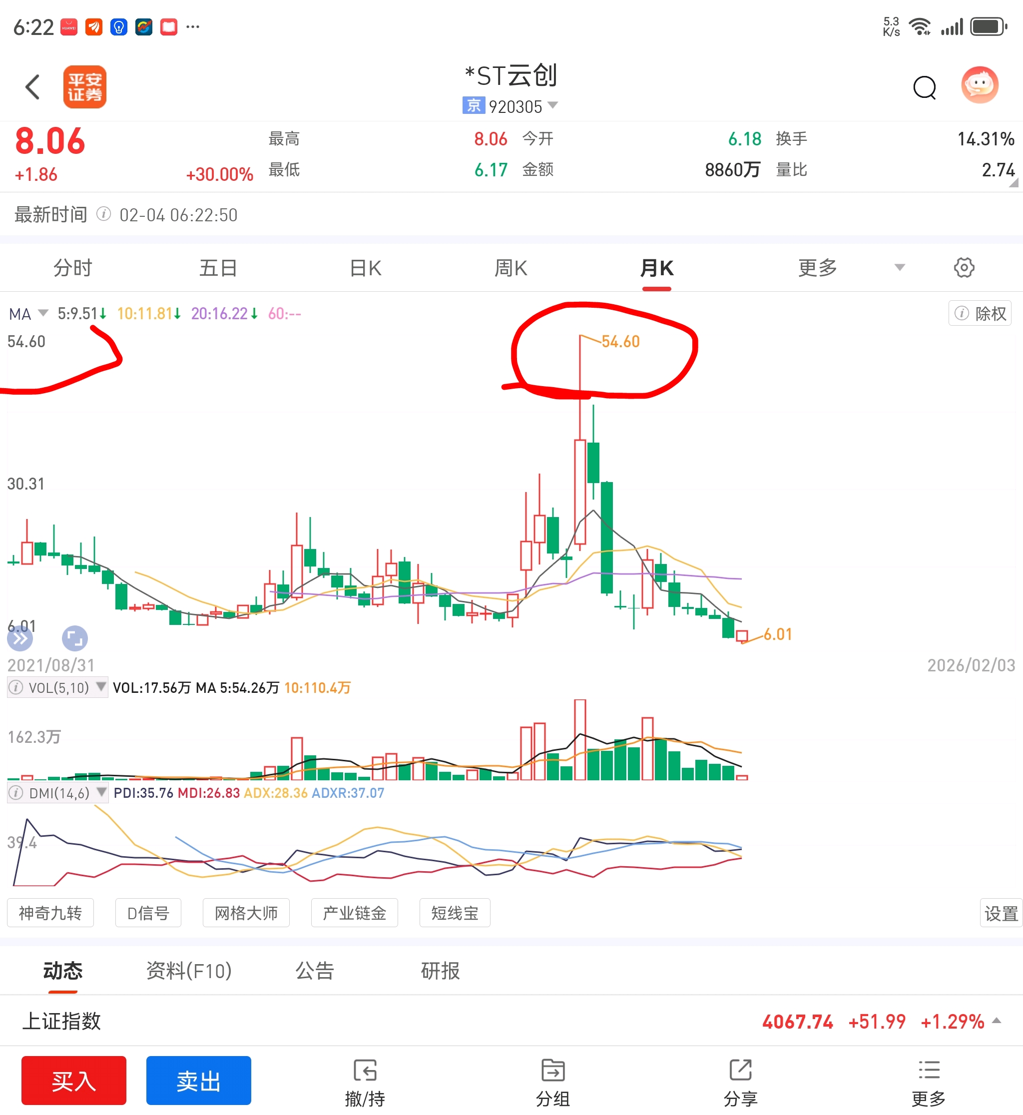 $*ST云创(SZ920305)$ 54.6跌下来!跌了