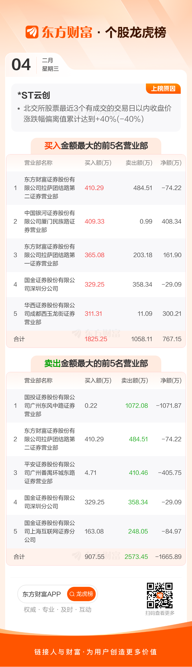 *ST云创(920305)龙虎榜数据(02-04)