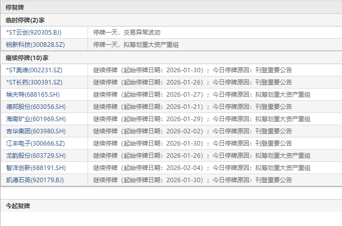 2月5日盘前停复牌汇总