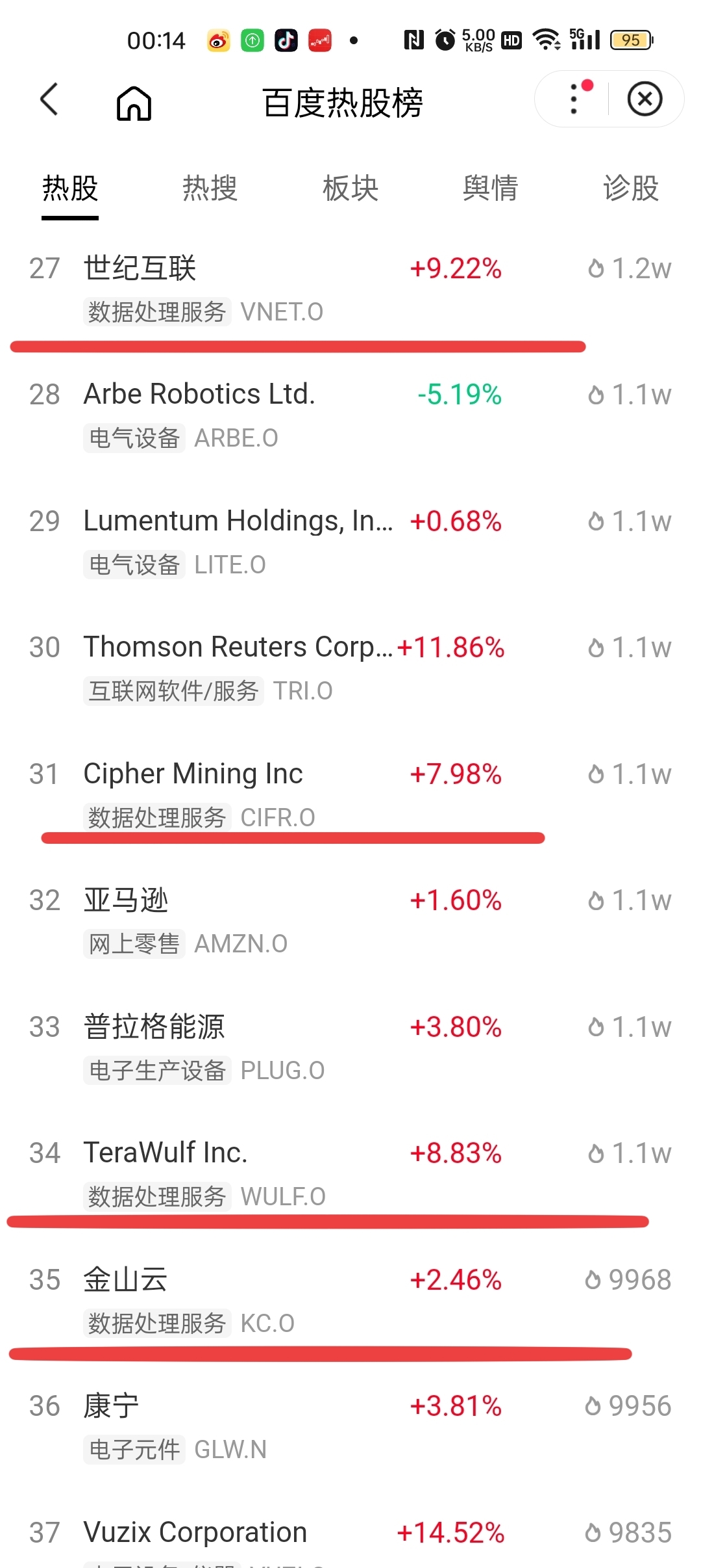 今天美国数据处理服务股票都在涨。