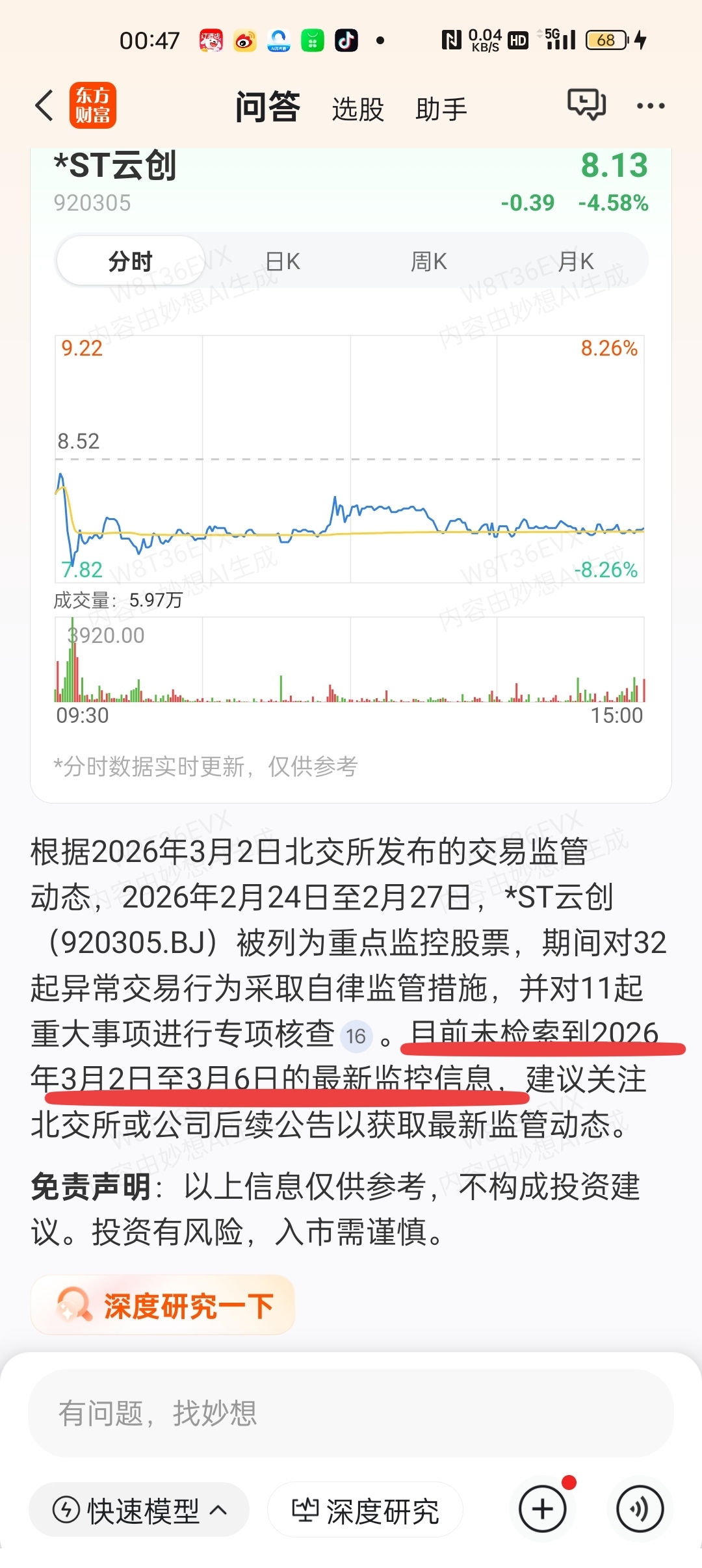 $*ST云创(SZ920305)$ 本周没有重点监控了吗
