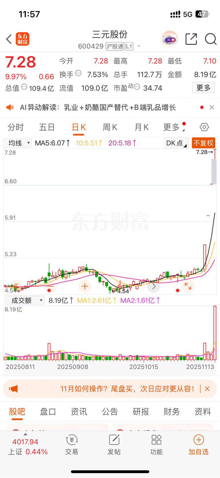都叫三元,别个四连板了。