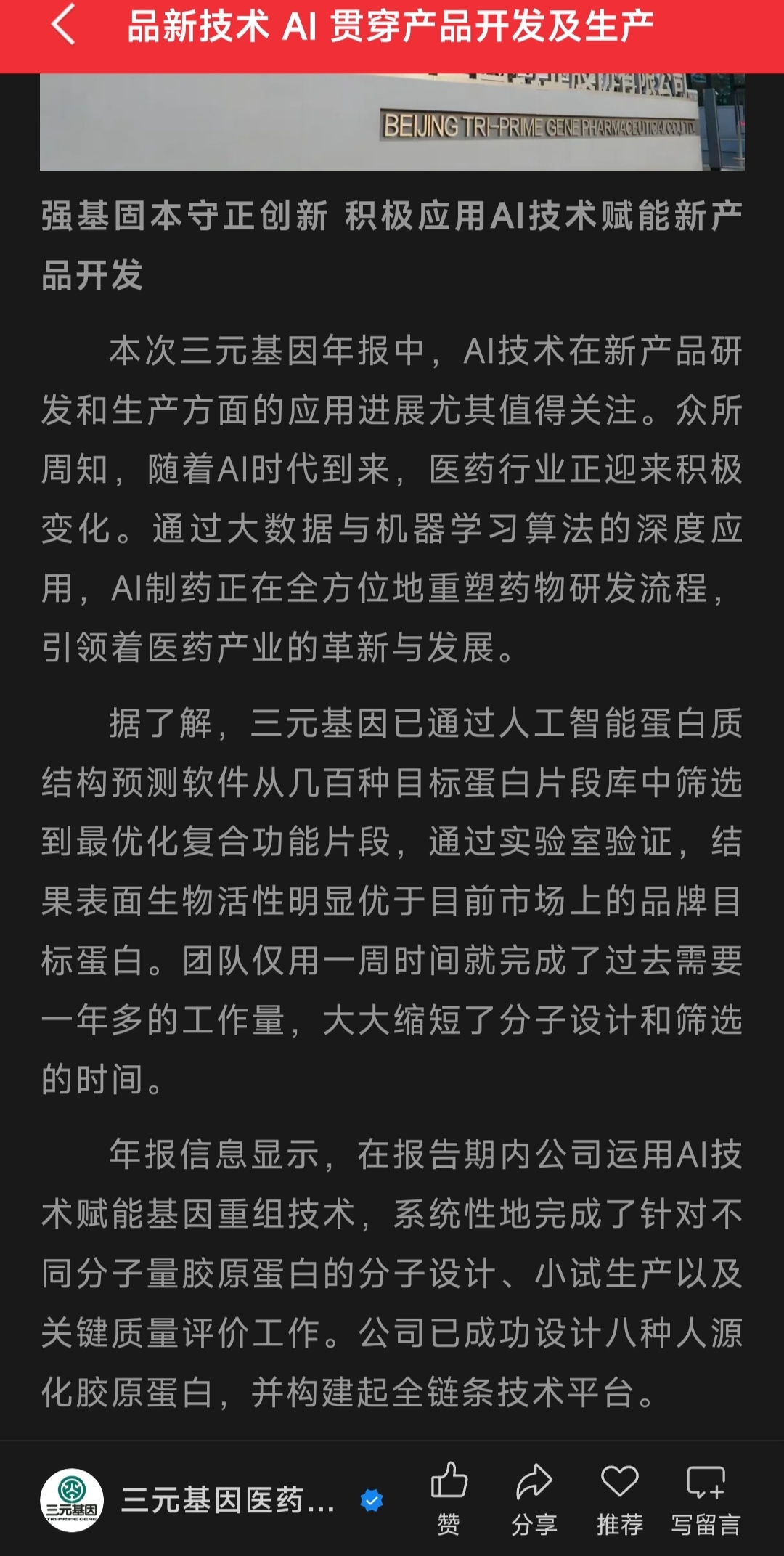 $三元基因(SZ920344)$ 三元基因积极应用AI技术赋能新产品研发