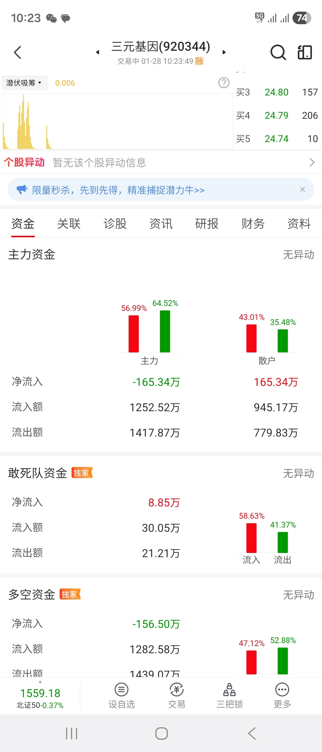 $三元基因(SZ920344)$ 散户还在进,说明还得跌,没到点位