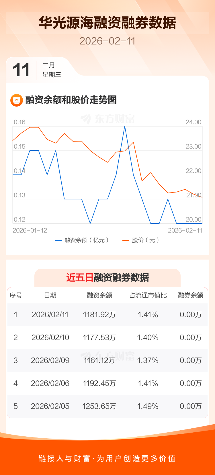 交易所最新数据显示,华光源海于2026年2月11日获融资买入5.82万元,融资偿还1.43万元,当日融资净买入4.39万元。目前,该股融资余额1181.92万,占流通市值比例为1.41%。
