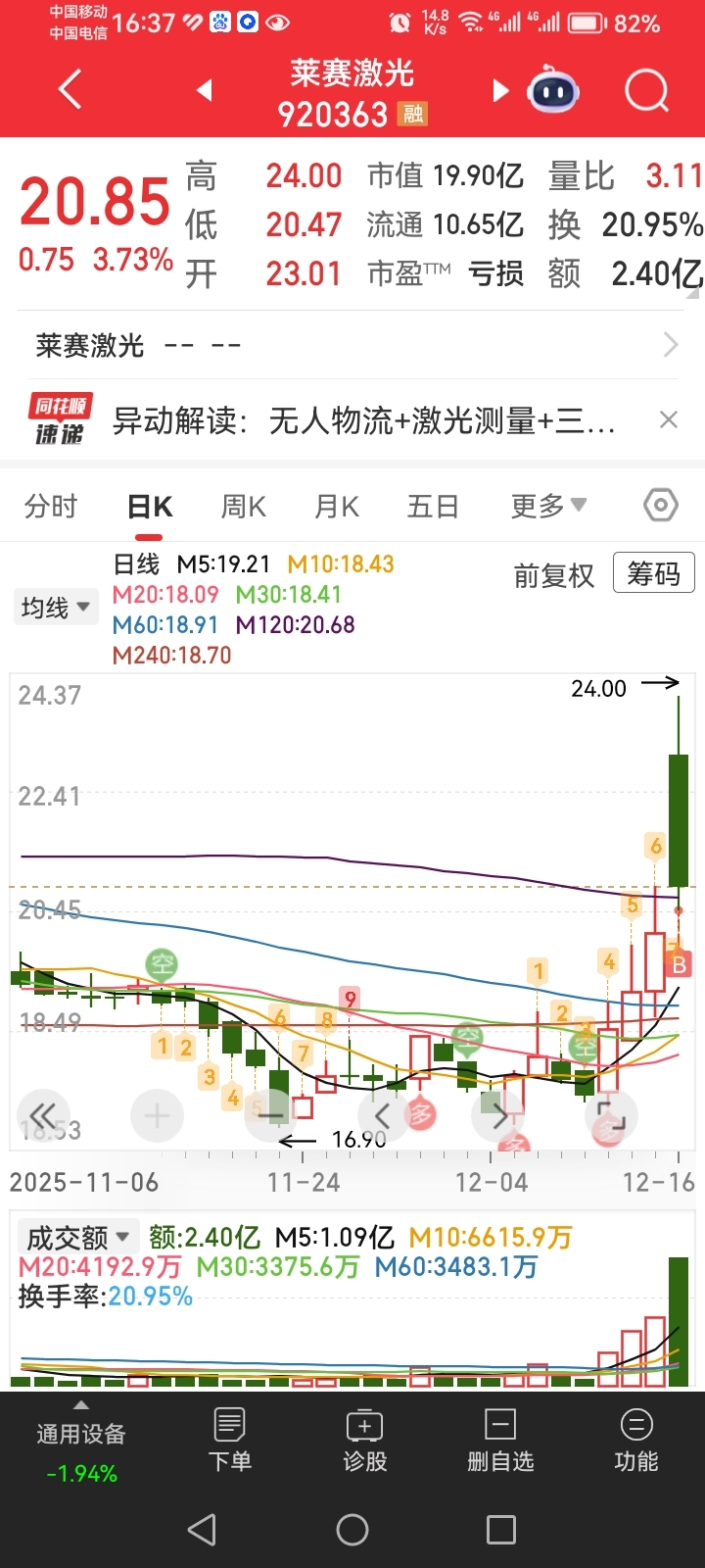 今天高开冲高回落至收盘在昨天高位20.87附近,形态走势良好洗盘扎实,明天高开高走站稳24妥妥吃肉,甚至明天后天来个板。