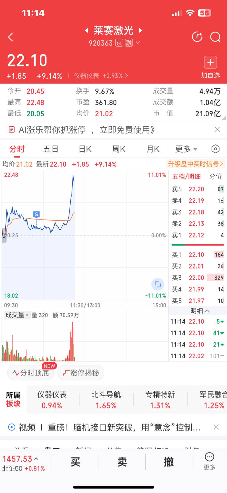 $莱赛激光(SZ920363)$ 就差我这几十手吗