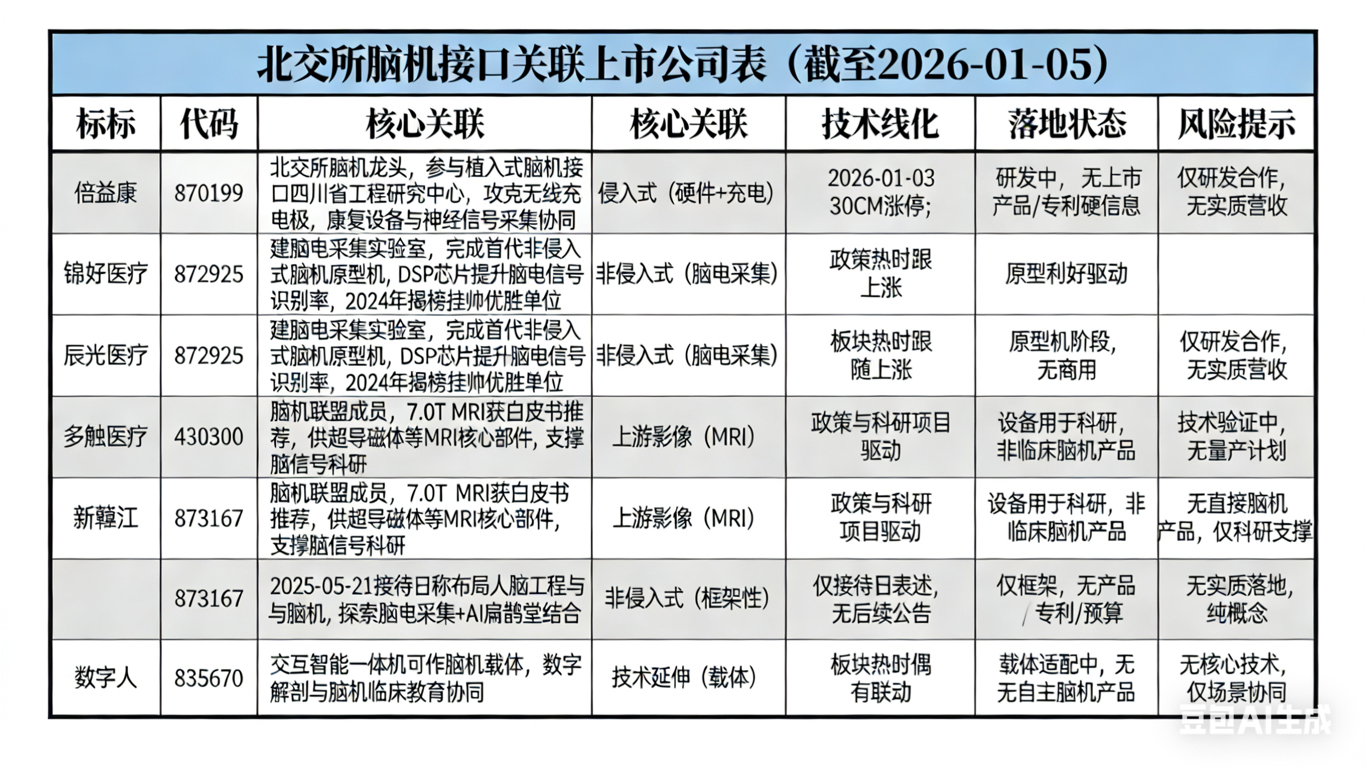 北交所脑机接口小表格