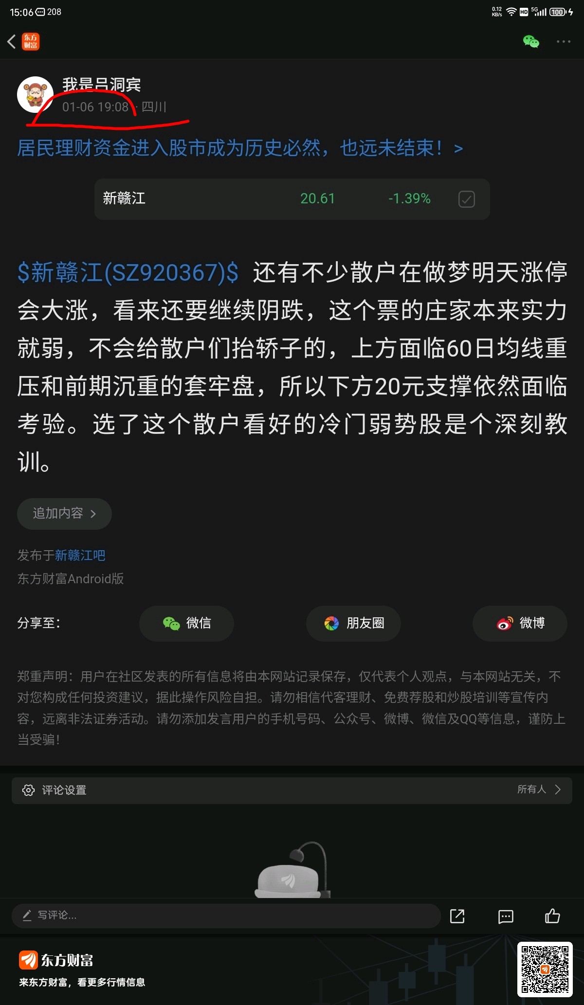 温馨提示: 1.根据《证券法》规定,禁止编造、传播虚假信息或者误导性信息,扰乱证券市场;2.用户在本社区发表的所有资料、言论等仅代表个人观点,与本网站立场无关,不对您构成任何投资建议。用户应基于自己的独立判断,自行决定证券投资并承担相应风险。《东方财富社区管理规定》