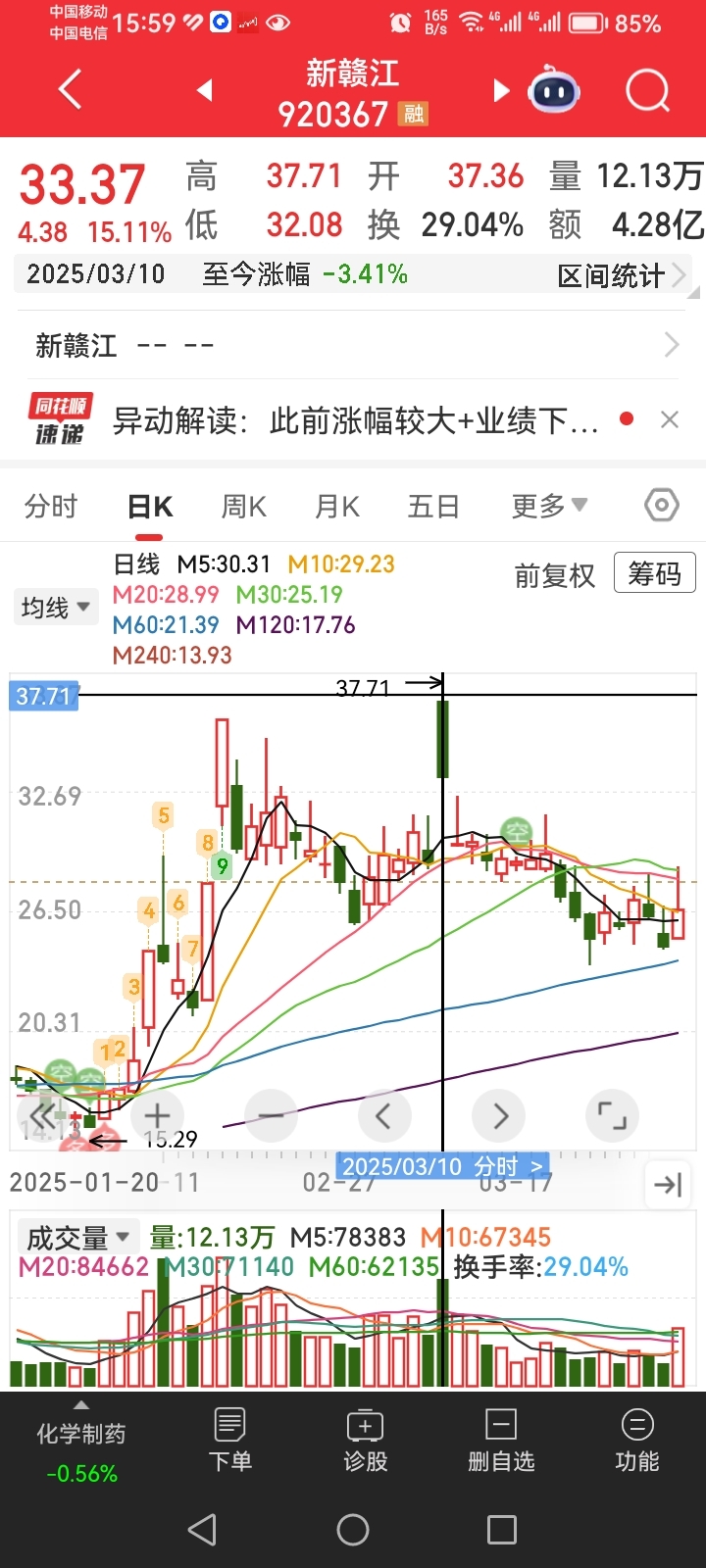 $新赣江(SZ920367)$ 周五挑战去年3月10号37.71后创新高45+。