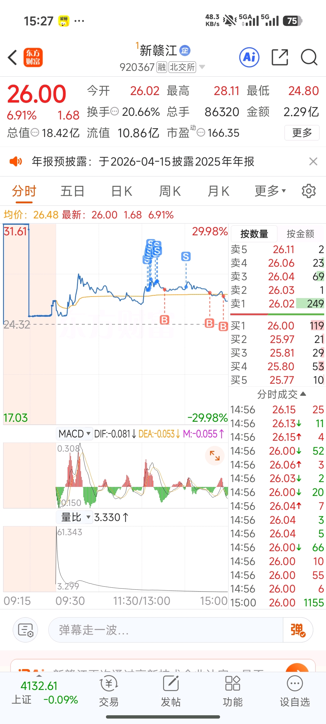 $新赣江(SZ920367)$ 我做了一个t,今天太弱了,有点套人的感觉,感觉明天不妙,但是长期还是看好