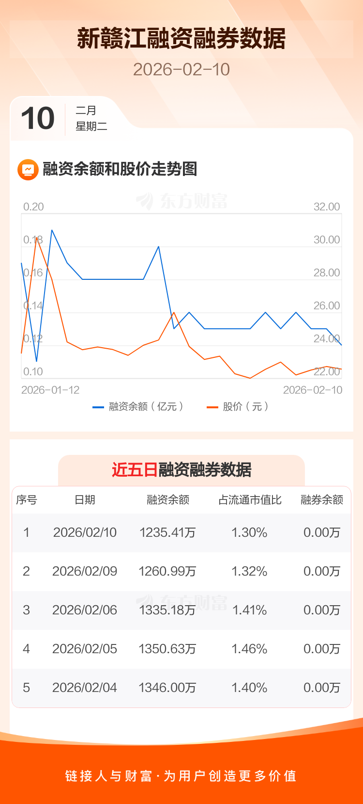 交易所最新数据显示,新赣江于2026年2月10日获融资买入195.77万元,融资偿还221.35万元,当日融资净偿还25.58万元。目前,该股融资余额1235.41万,占流通市值比例为1.30%。