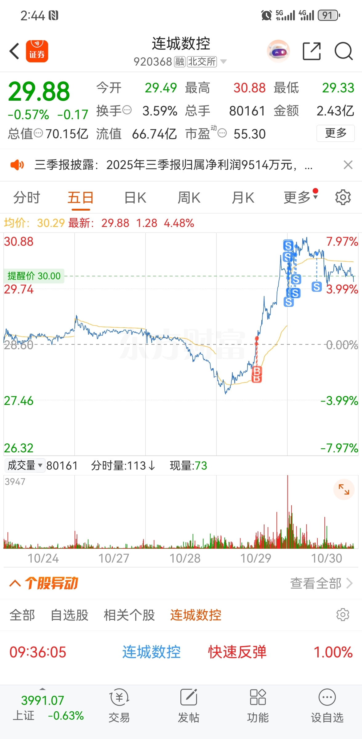 $连城数控(SZ920368)$ 做个T,马上买回来