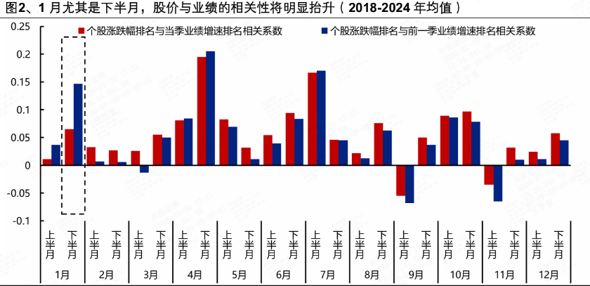 随着业绩预告进入披露高峰,1月下半月股价与业绩的相关性明显抬升。随着市场情绪回归理性,叠加上市公司年报预告陆续披露,业绩将再次成为阶段性主导市场的重要因素,市场或将围绕基本面进行一轮结构上的调整,前期热点板块面临业绩验证,同时部分低位绩优板块也有望承接新一轮资金流入。