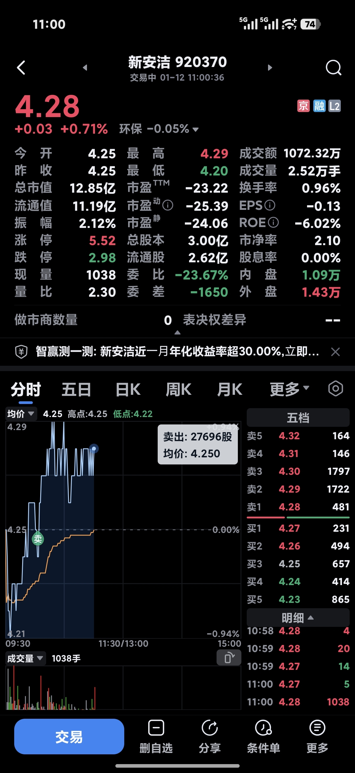$新安洁(SZ920370)$ 唱空的太多了,难得费神。赚点零花钱跑了