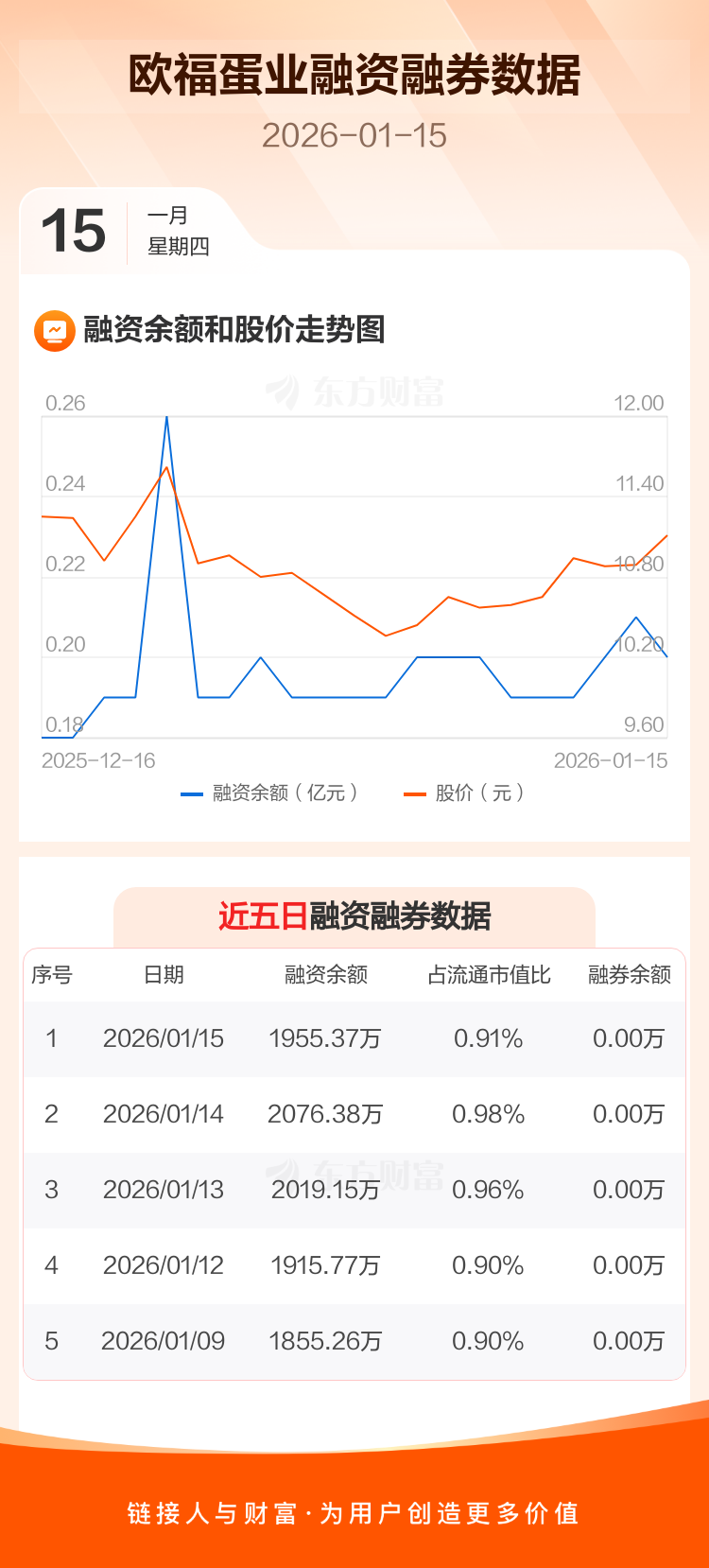 欧福蛋业:融资净偿还121.01万元,融资余额1955.37万元