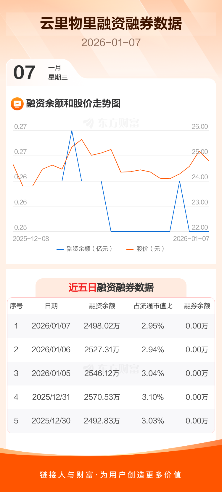 云里物里:融资净偿还29.29万元,融资余额2498.02万元